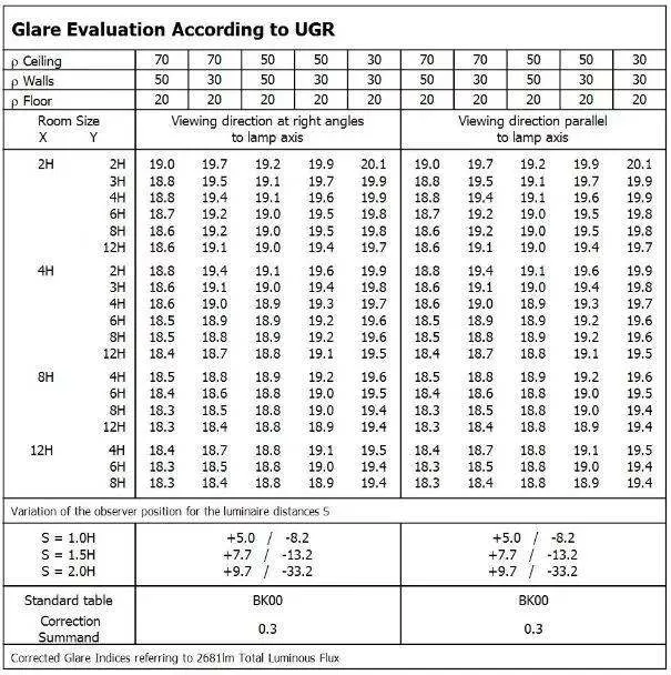 - UGR< 16 tot UGR< 19 afhankelijk van de armatuurstroom
