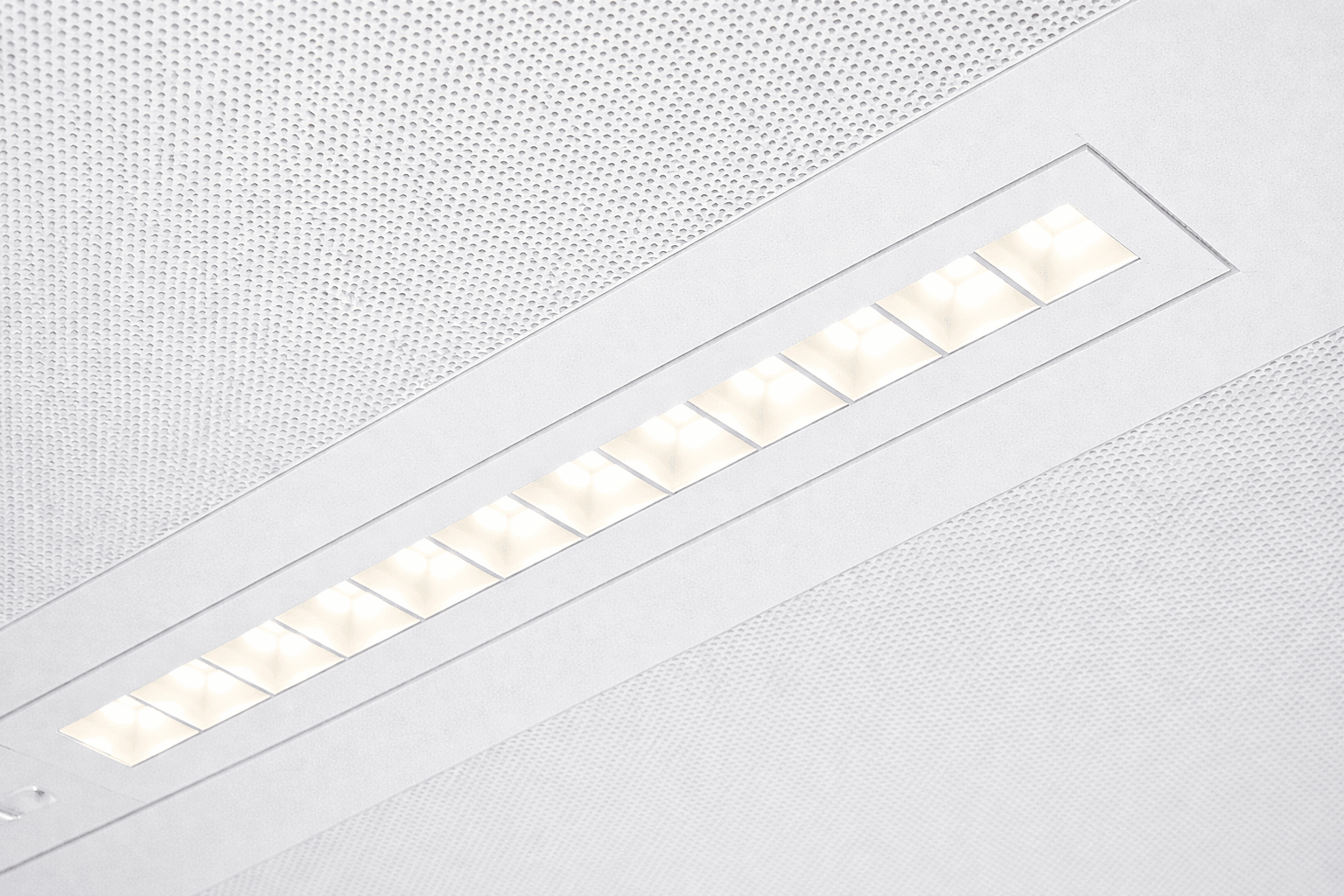 Het samenspel tussen lensontwerp en lamel resulteert in een innovatieve verlichtingsoplossing met een zeer gecontroleerde lichtverdeling. Het armatuur biedt hoog visueel comfort en een lage verblinding met een UGR kleiner dan 19.